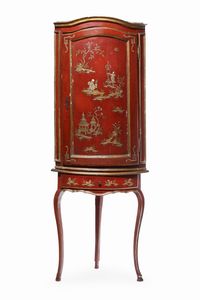 Angolare laccato a chinoiseries in oro su fondo rosso. XVIII secolo