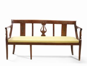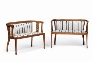 Coppia di divanetti in legno filettato. XIX secolo