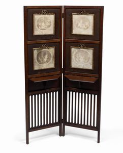 Paravento in legno con quattro stampe antiche