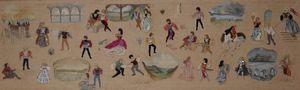 Pannello con figure ricamate e dipinte