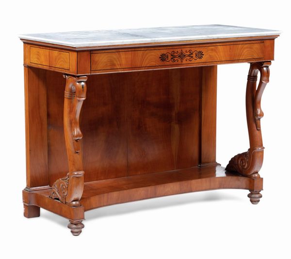 Consolle Carlo X lastronata ed intarsiata. XIX secolo