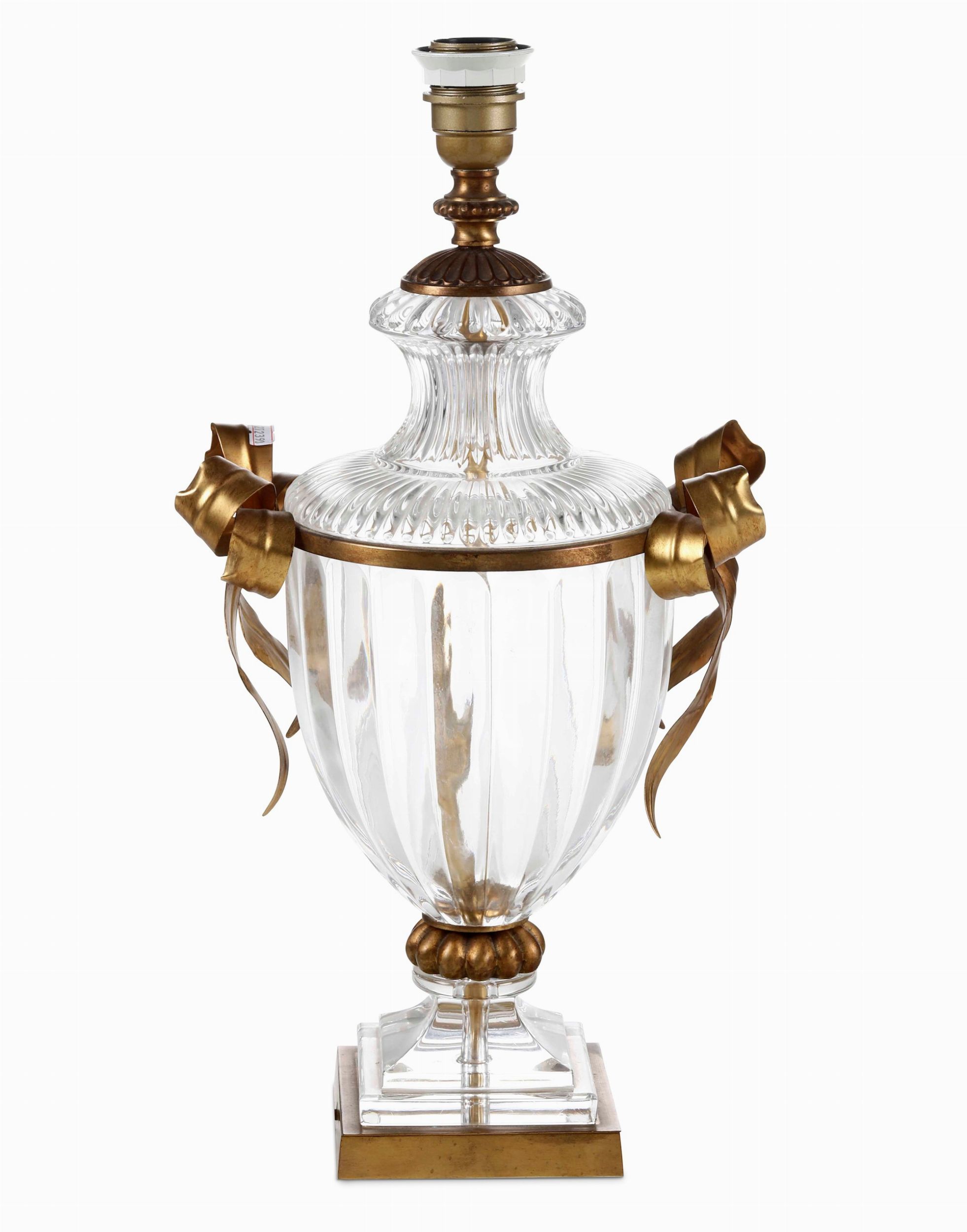 Lampada da tavolo in vetro molato con montatura in bronzo dorato. XX secolo