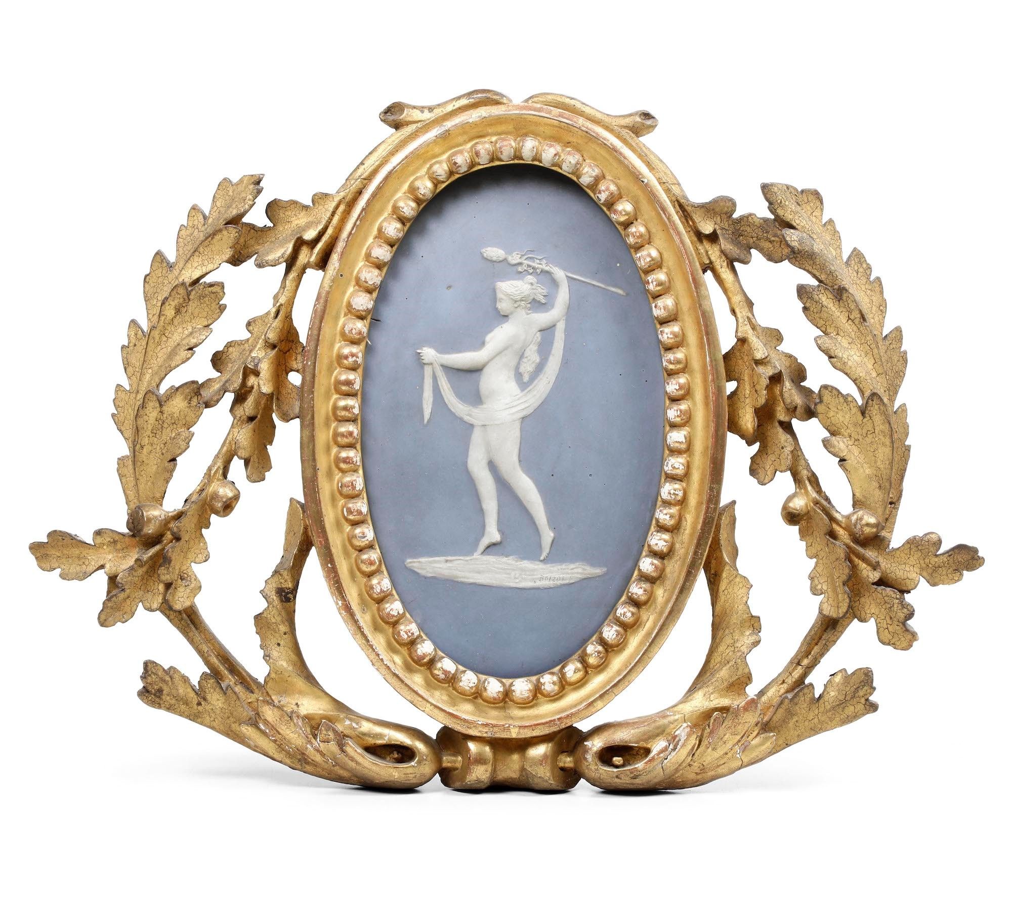 Piccola cornice in legno intagliato e dorato con bassorilievo in bisquit. XIX se [..]