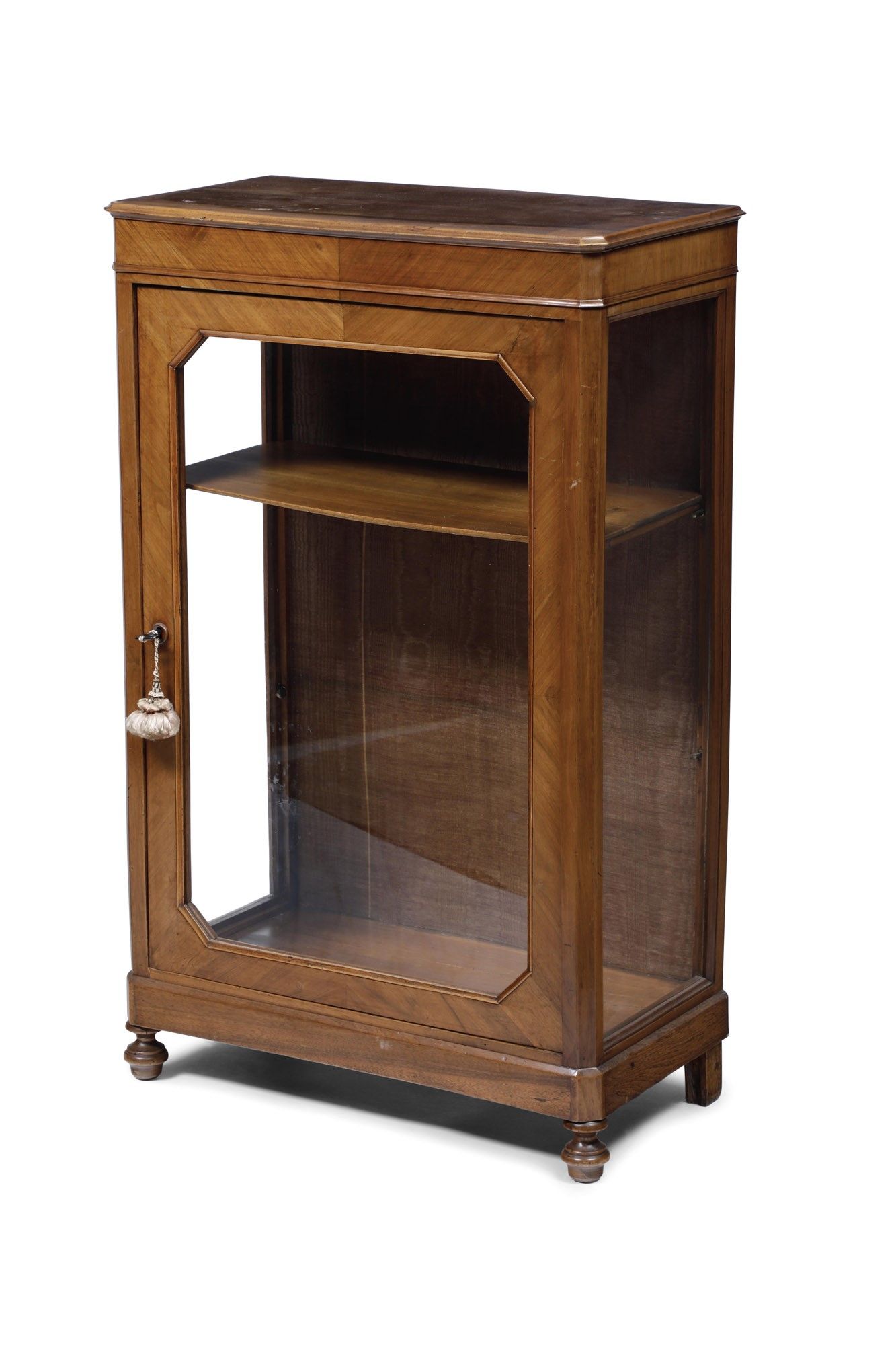 Vetrina in legno lastronato ad un’anta. XIX-XX secolo