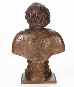 Busto reliquiario di Santo in legno intagliato, arte barocca (Genova?) XVII seco [..]