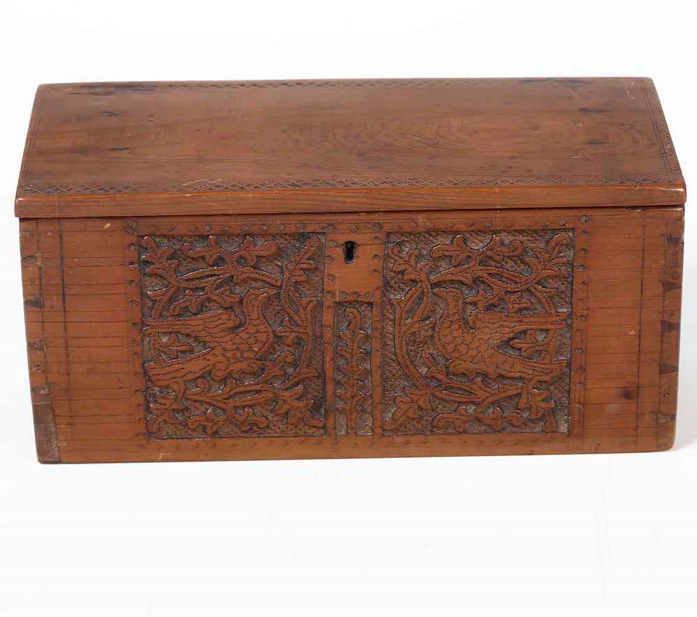 Cofanetto. Legno intagliato e pirografato. Svizzera, Cantone dei Grigioni, XVII [..]