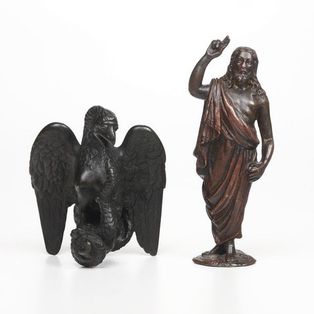 Due antichi bronzi, Cristo benedicente e aquila che ghermisce un serpente