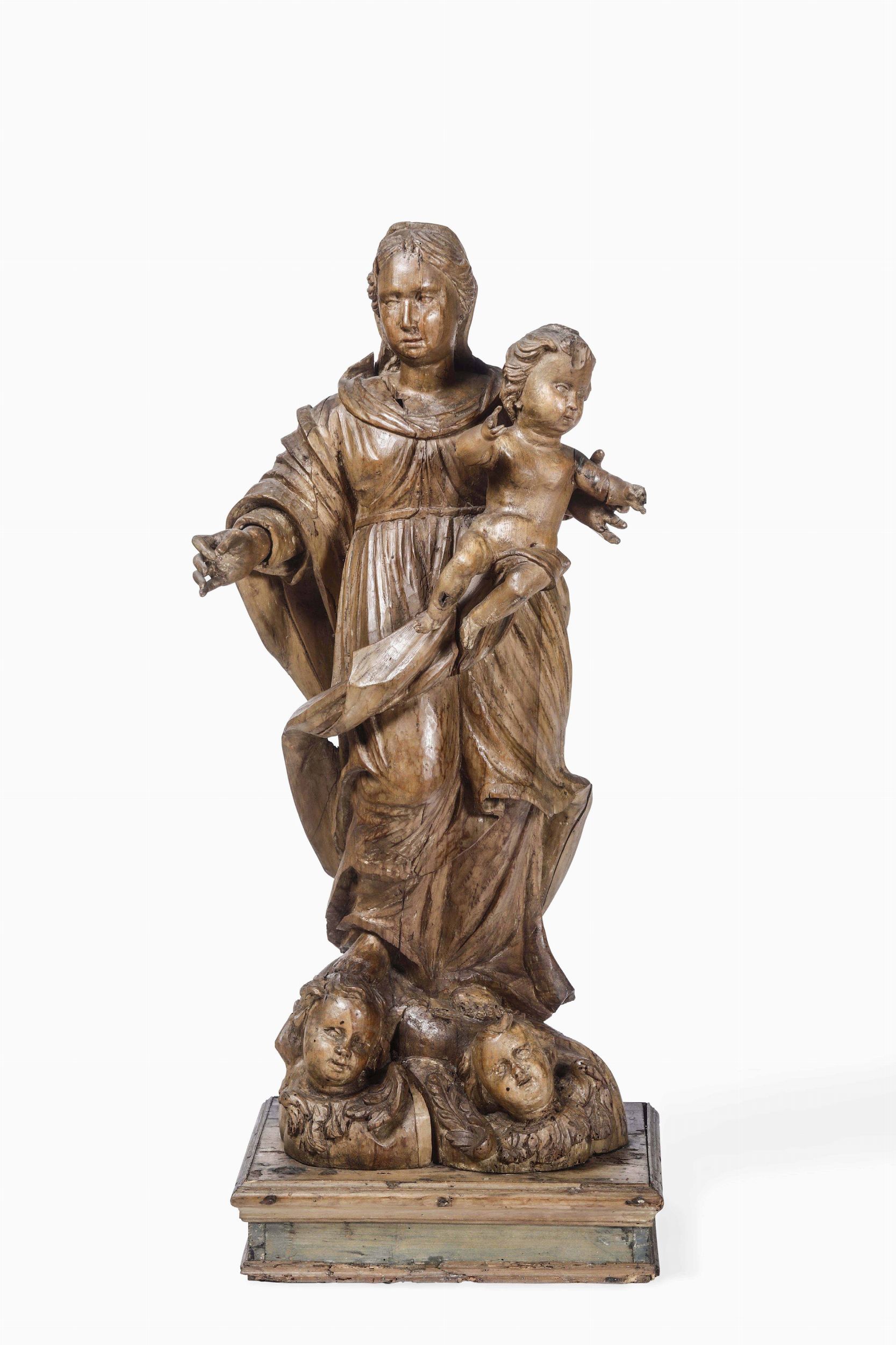 Madonna con Bambino e angeli. Legno scolpito (privo della policromia). Arte barocca [..]