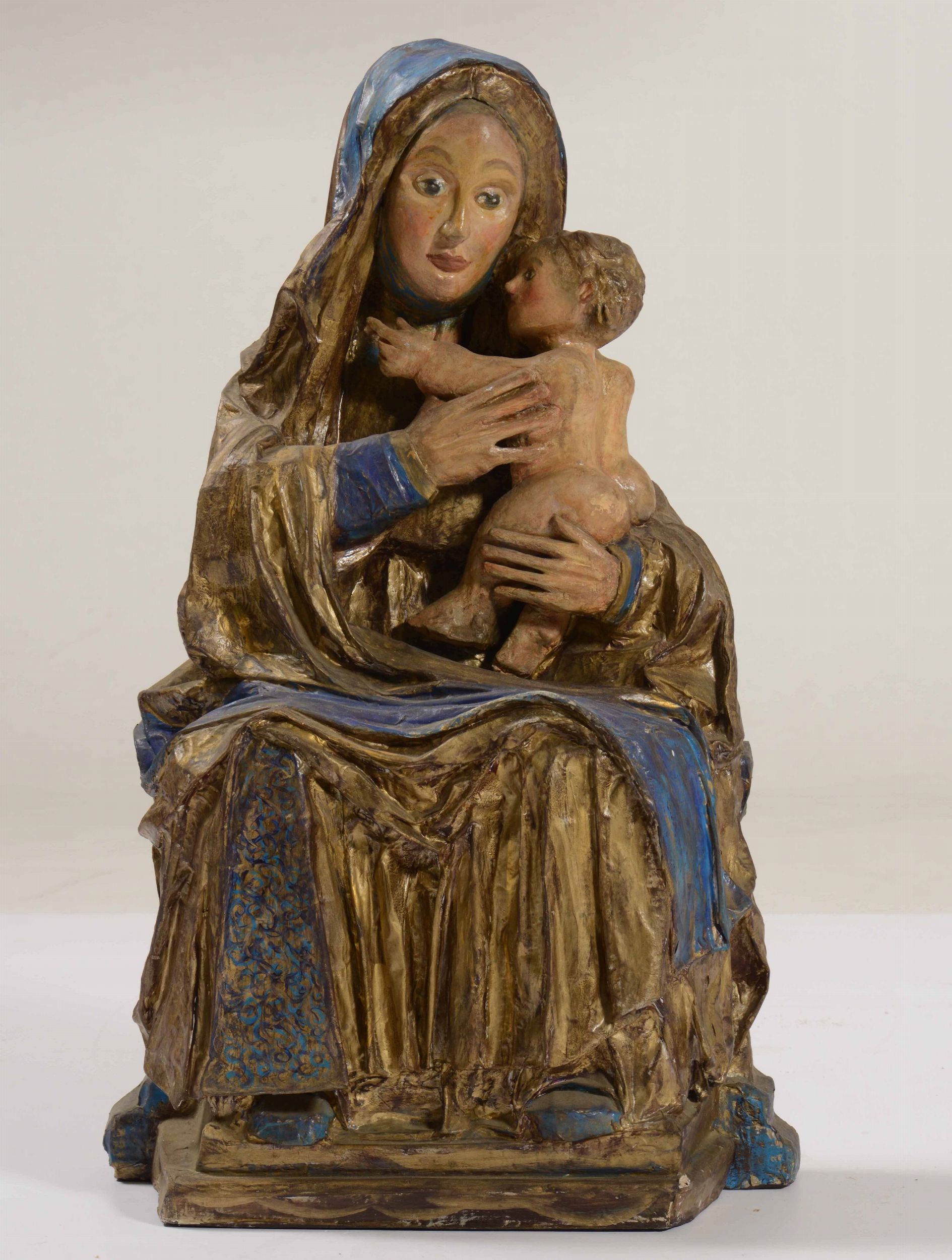 Scultura in cartapesta dipinta raffigurante Madonna con Bambino, XX secolo