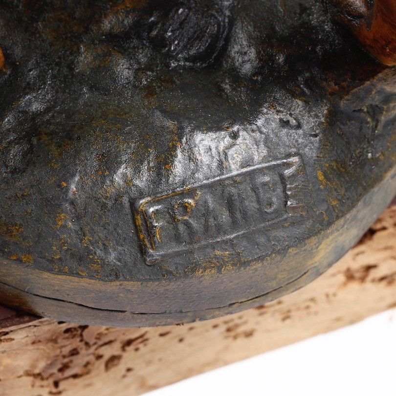 Scultura raffigurante bambina in legno e bronzo firmata August Moreau