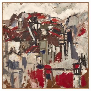 ALBINO LUCATELLO (Venezia 1927 - Tarcento 1984) Tetti a Venezia 1956 olio su compensato cm 86x86 al retro cartiglio [..]