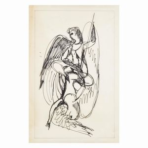 GIO' PONTI (Milano 1891 - 1979) Angeli n.3 pennarello nero su carta velina cm 68x45
