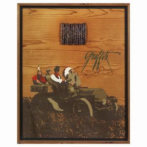 FABIO DE POLI (Genova 1947) Geronimo-Graffiti 1974 tecnica mista e collage su legno cm 100x80 al retro firmato, [..]