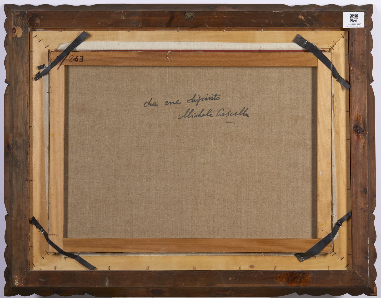 Firma in basso a sinistra e al retro. Autentica dell'artista su fotografia con timbro Galleria d'Arte Parametro, Roma. Certificato di provenienza Galleria d'Arte Parametro, Roma. 1973 circa.
