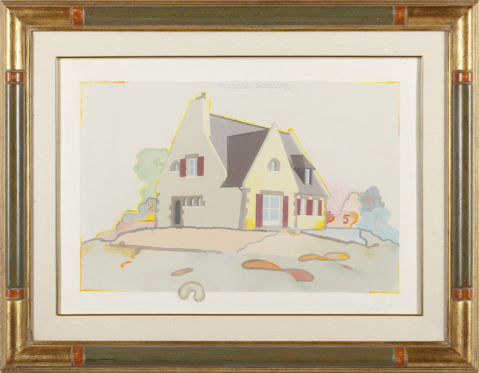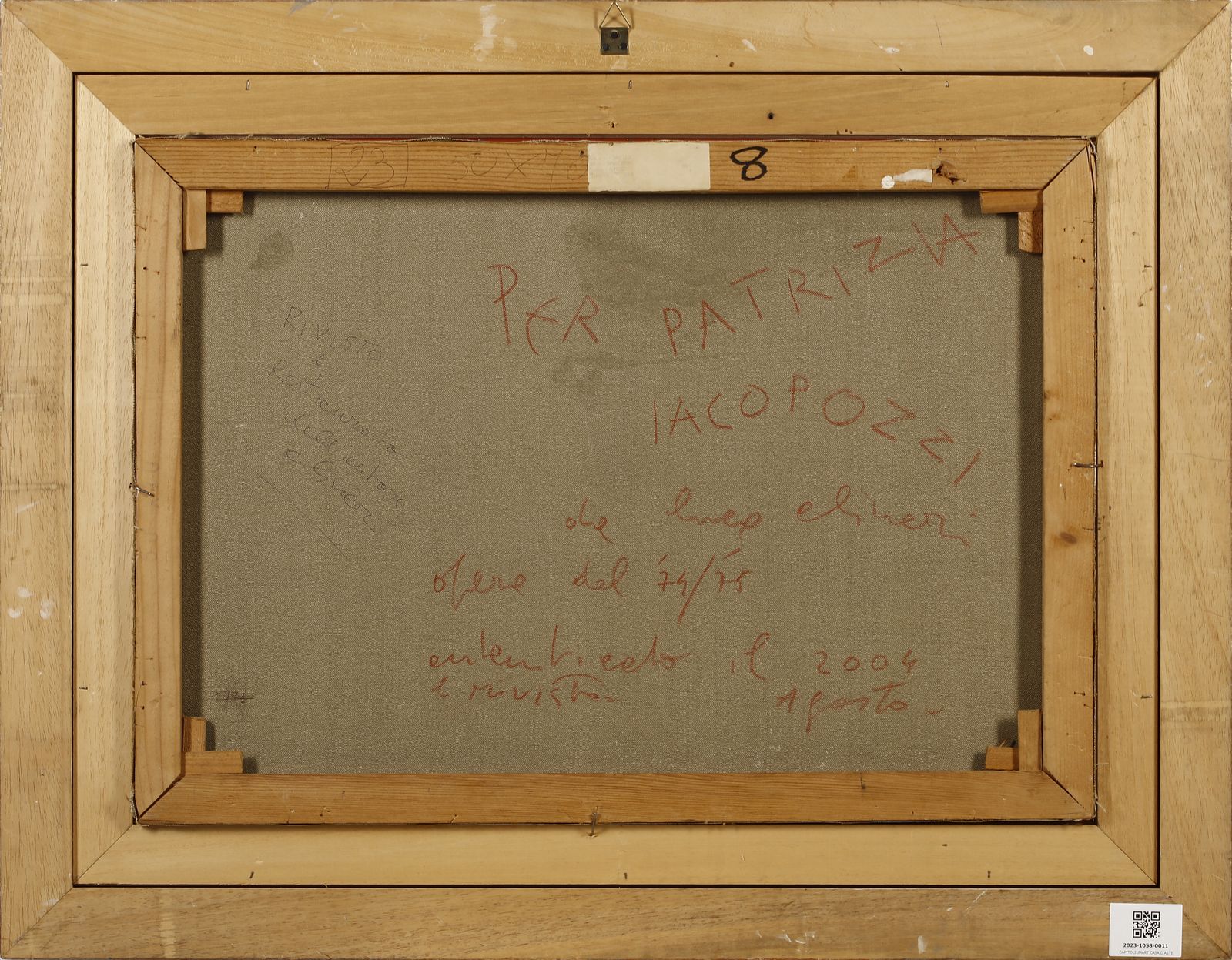 Titolo in alto al centro, firma in basso a destra. Al retro dedica, firma e anno. Autentica dell'artista su fotografia. 1974 -1975.