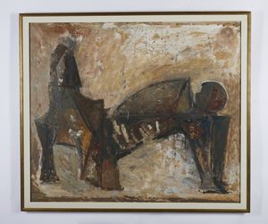 Al retro cartiglioToninelli Arte Moderna, Milano e cartiglio Museum Boymans Van beuningen, Rotterdam. Opera archiviata presso la Fondazione Marino Marini, Pistoia, come da documentazione allegata all'opera riportante il relativo numero d'inventario.Pubblicazione: H. Read, P. Waldberg & G. di San Lazzaro, Marino Marini, Complete Works, .New York 1970, n. 303 (illustrato,p.439). L. Papi, Marino Marini, Paintings, Johannesburg 1989, n. 448 (illustrato, p. 242). Esposizioni: Rotterdam, Museum Boymans Van beuningen, Marino Marini als Schilder, novembre-dicembre 1964, n.64. Antwerp, Koniklijk Museum voor Shone Kunsten, febbraio – aprile 1965, n. 52. Provenienza: Toninelli Arte Moderna, Milano. Museum Boymans Van beuningen, Rotterdam. Koniklijk Museum voor Shone. Collezione privata, Firenze.