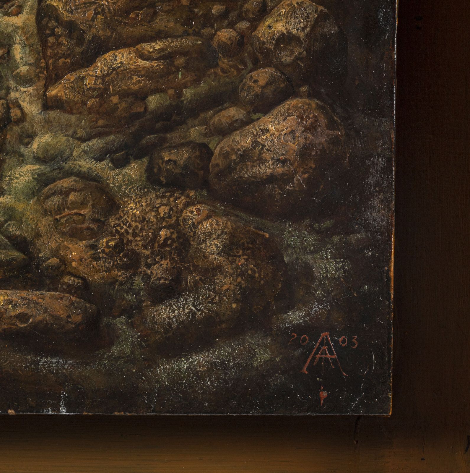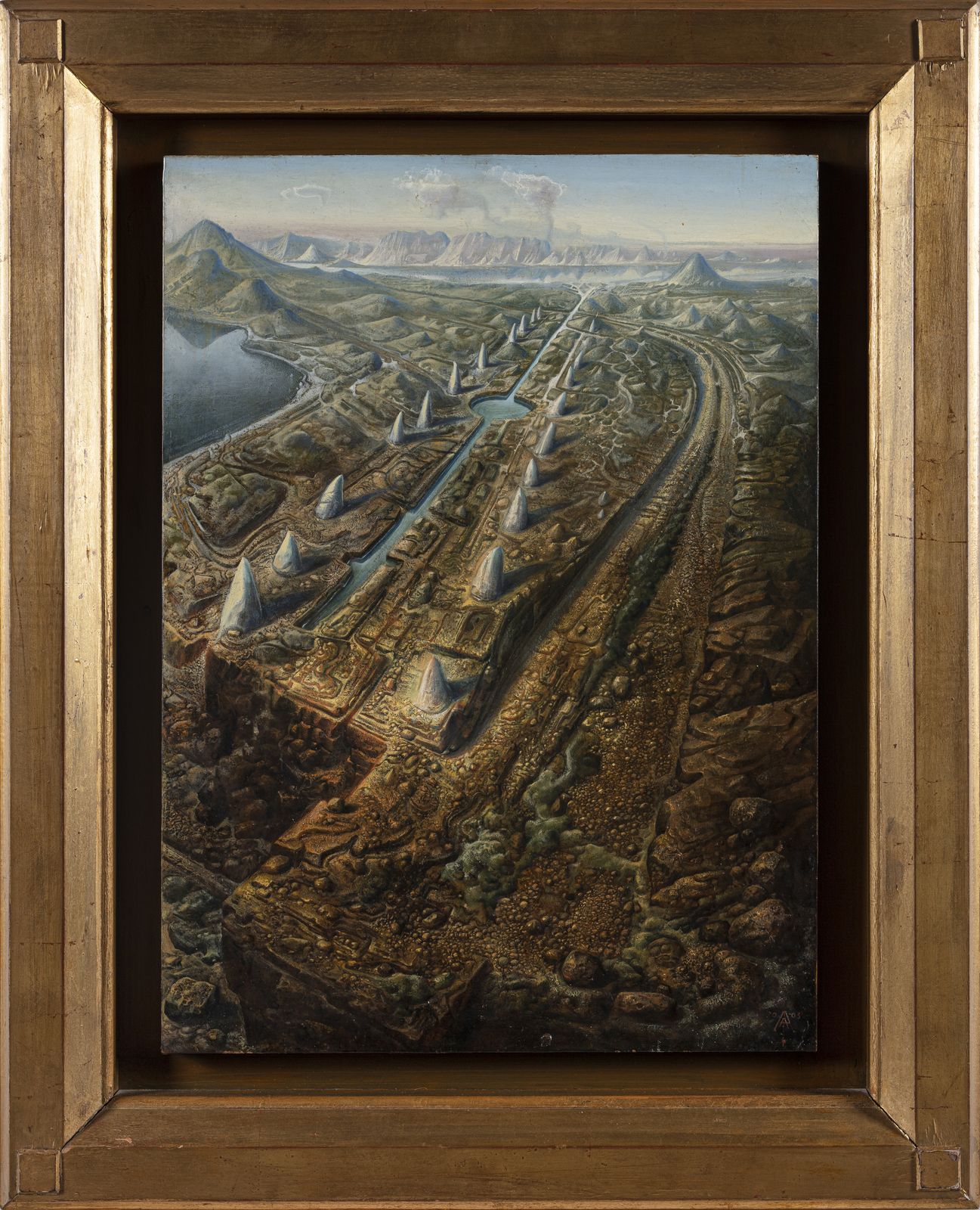 Firma e anno in basso a destra. Al retro titolo, firma e anno. Esposizioni: Paesaggi. Le invenzioni di un visionario, Galleria Antonia Jannone, Milano, marzo-aprile 2004. Pubblicazioni: Agostino Arrivabene. Paesaggi, a cura di Giorgio Soavi, n. 8. 2003/2004. Lievi difetti.