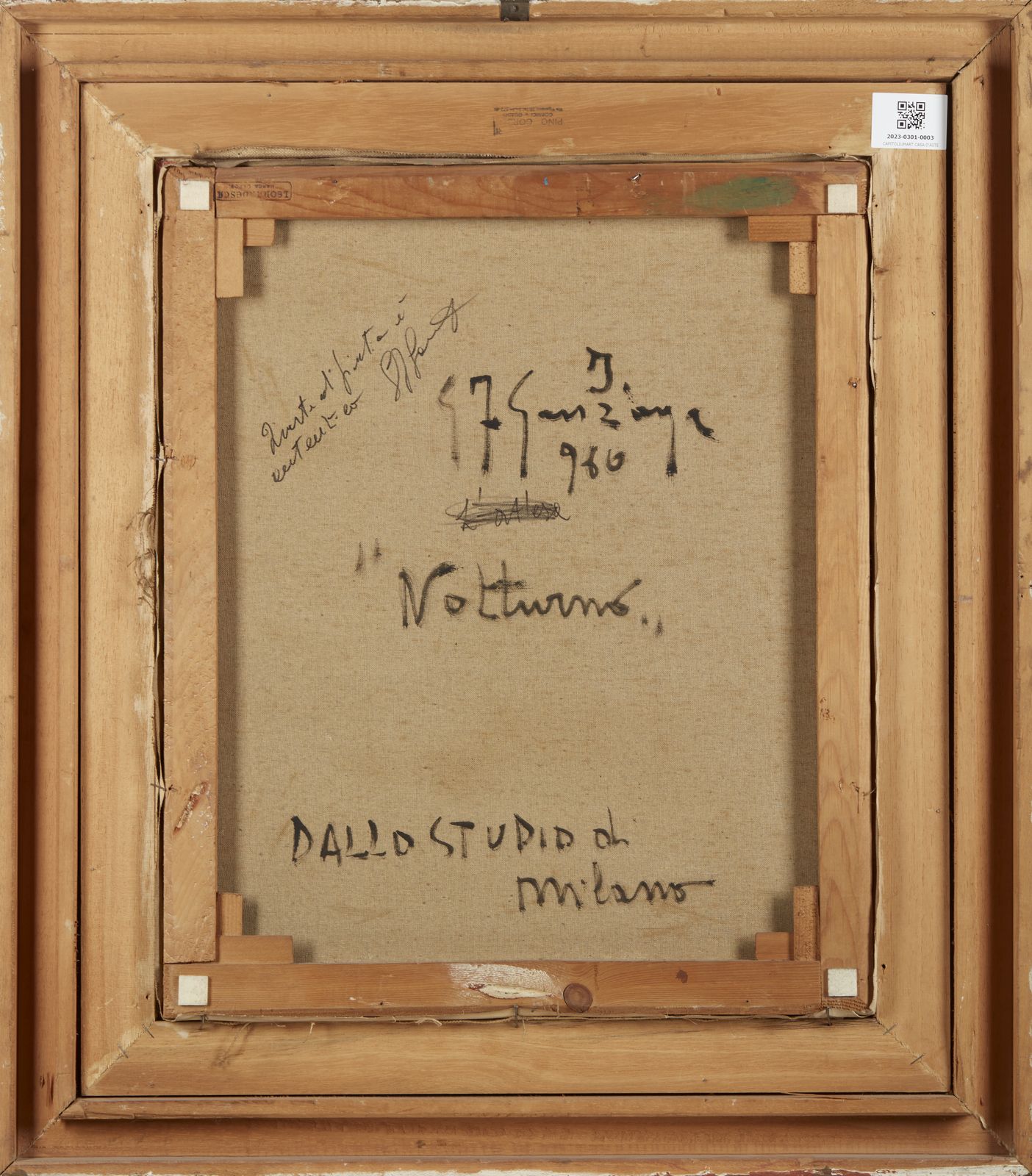 Firma in basso a sinistra. Al retro titolo, firma e anno. Autentica dell'artista su fotografia riportante il relativo numero d'inventario. Pubblicazioni: Giovan Francesco Gonzaga. Volume I, a cura di Paolo Levi e Vittorio Sgarbi, Edizioni Giorgio Mondadori, Milano, 2006, p. 70. Provenienza: studio dell'artista, Milano. collezione privata, Padova.