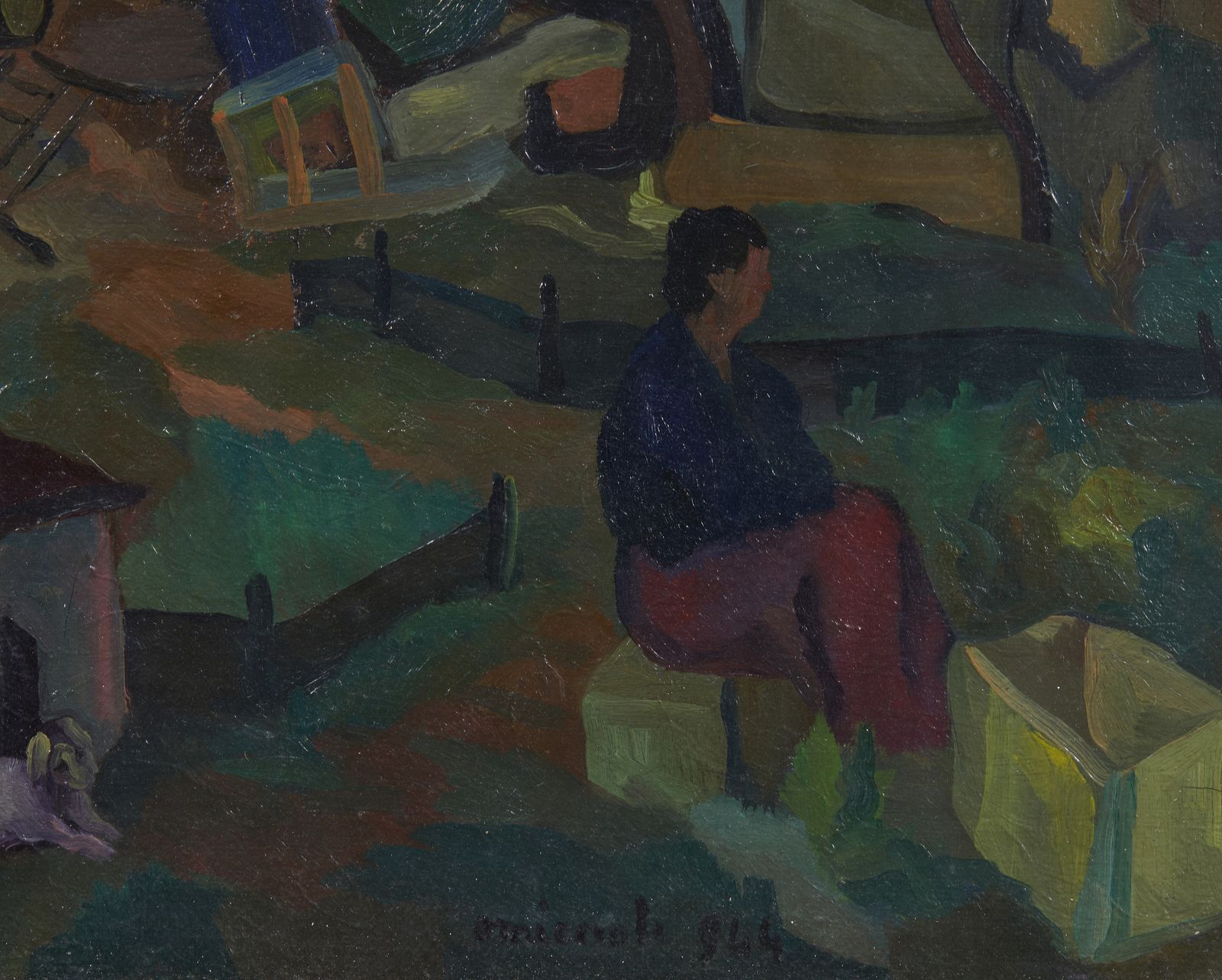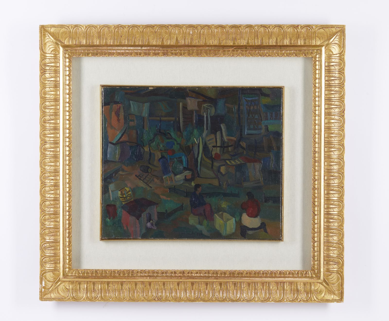 Firma e anno in basso al centro. Al retro titolo, firma, anno e cartigli Mostra antologica di Giovanni Omiccioli, Roma e Galleria Civica d'arte moderna, Ferrara. Autentica su fotografia di Arnaldo Omiccioli con timbro Galleria La Gradiva, Roma. Esposizioni: Mostra antologica di Giovanni Omiccioli, Palazzo Barberini, Roma, 20 dicembre 1977-31 gennaio 1978. Giovanni Omiccioli, Galleria civica d'arte moderna, Palazzo dei Diamanti, Ferrara, ottobre-dicembre 1979. Lievi difetti.