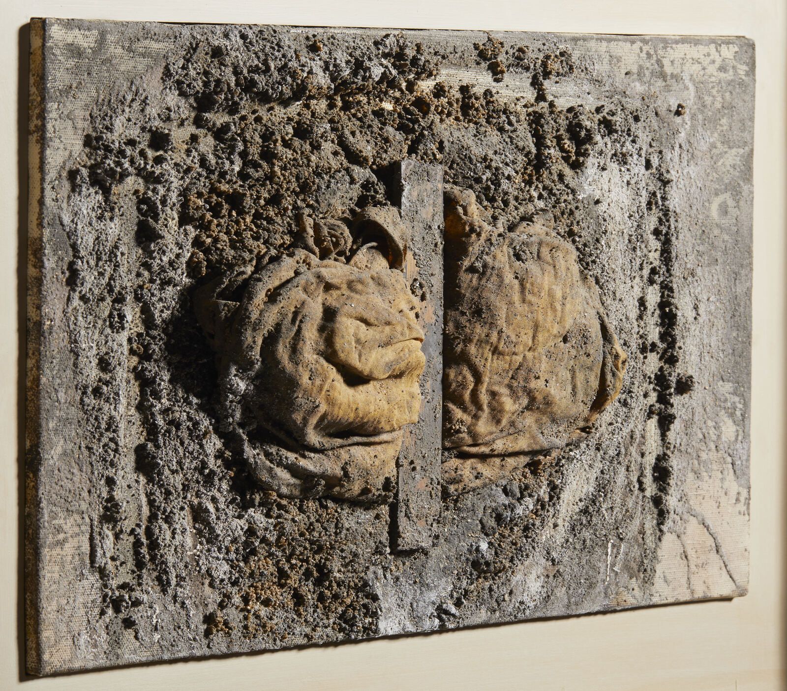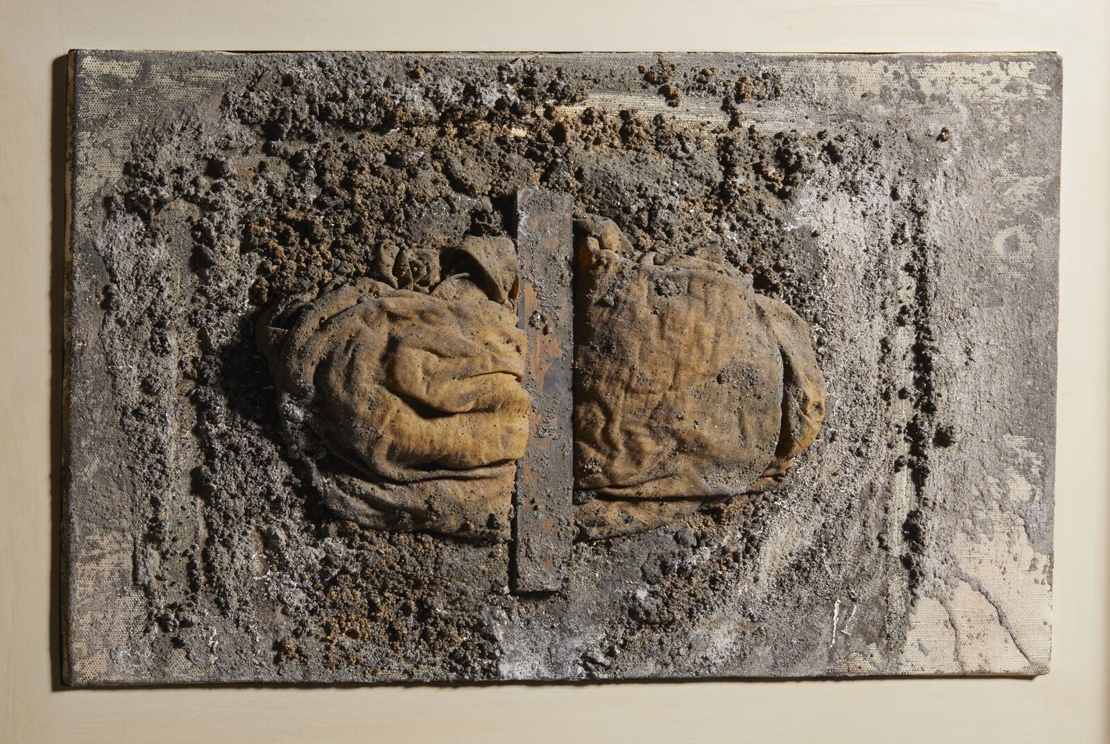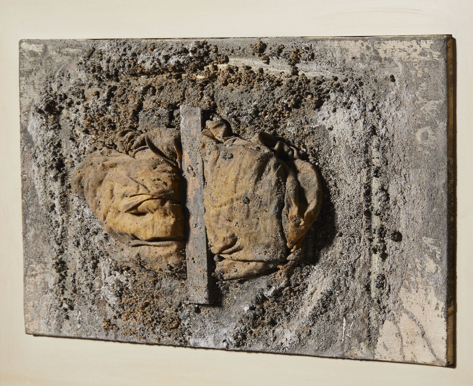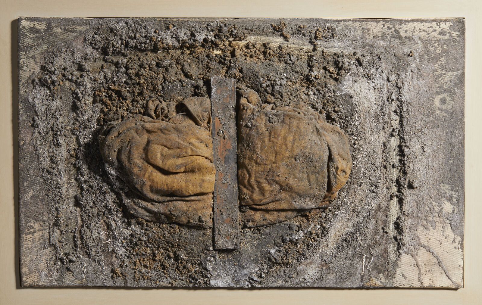 Al retro firma, anno, cartiglio descrittivo Galerie Thomas, Munich e cartiglio descrittivo Martha Jackson Gallery, New York. Pubblicazioni: J. Teixidor, Antoni Tapies. Fustes, papers, cartons, collages, Barcellona 1964, p. 172 (illustrato). P. Gimferrer, Tapies i l'esperit català, Barcellona 1974, p. 218, tav. 235 (illustrato). A. August́, Tapies. Catalogue Raisonnè, Barcellona 1990, vol. II, p. 209, n. 1297. Esposizioni: Roma, Galleria Il collezionista, Antoni Tapies, 1971, cat., p. 44-45, n. 17 h/e (illustrato). Provenienza: Sala Gaspar, Barcellona. Martha Jackson Gallery, New York. Galleria Toninelli, Roma. Galleria Il Collezionista, Roma. Collezione privata, Firenze.