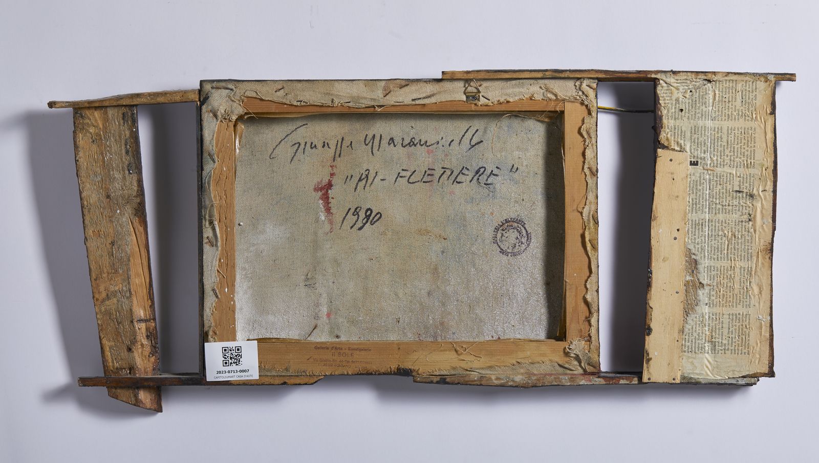 Al retro titolo, firma, anno e timbri Galleria L'Elefante, Treviso e Galleria Il Sole Kunstgalerie, Bolzano. Autentica dell'artista su fotografia. Pubblicazioni: Rivista Il Segno, maggio/giugno 2002 n°184, p. 30. Catalogo Expo-Arte, Bari, 1993, p. 34. Lievi difetti.