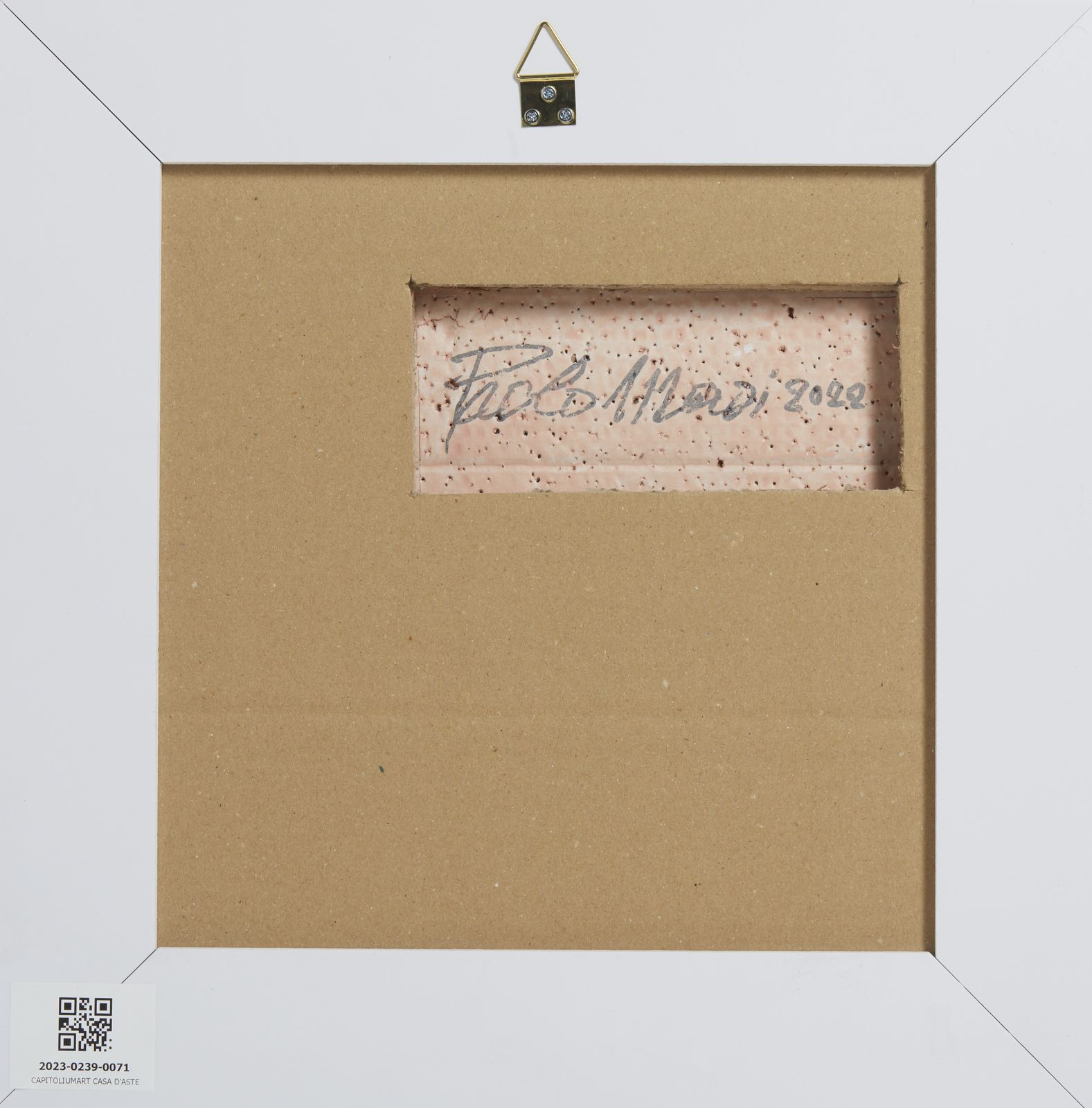 Al retro firma e anno. Autentica dell'artista su fotografia. Entro teca in plexiglass.