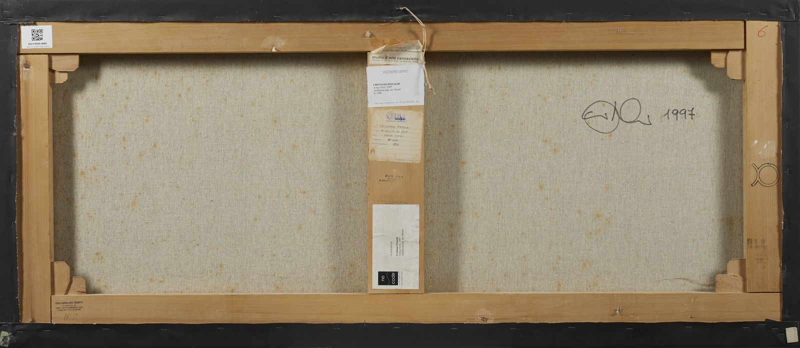 Al retro firma, anno e cartigli descrittivi Studio d'Arte Cannaviello, Milano. Galleria Rizziero Arte, Pescara. Blu Art-Arte Moderna e Contemporanea, San Benedetto del Tronto e No Code, Bologna. Provenienza: Studio d'arte Cannaviello, Milano. No Code, Bologna. Blu Art - Modern & Contemporary Art, San Benedetto del Tronto. Galleria Rizziero Art, Pescara. Collezione privata, Pescara. Lievi difetti.