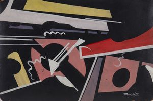 Firma in basso a destra. Al retro titolo e firma. Datazione indicata sul documento di provenienza rilasciato da Finarte. Lievi difetti.