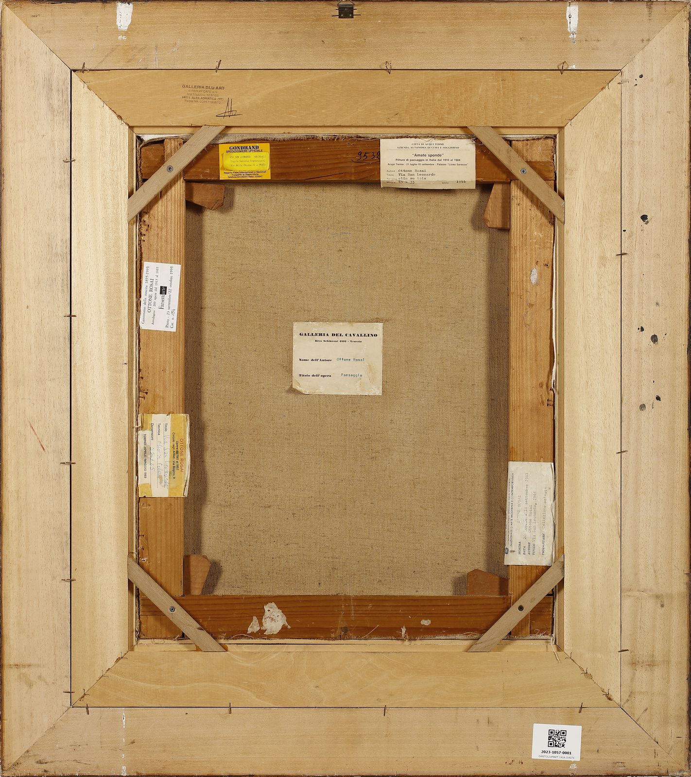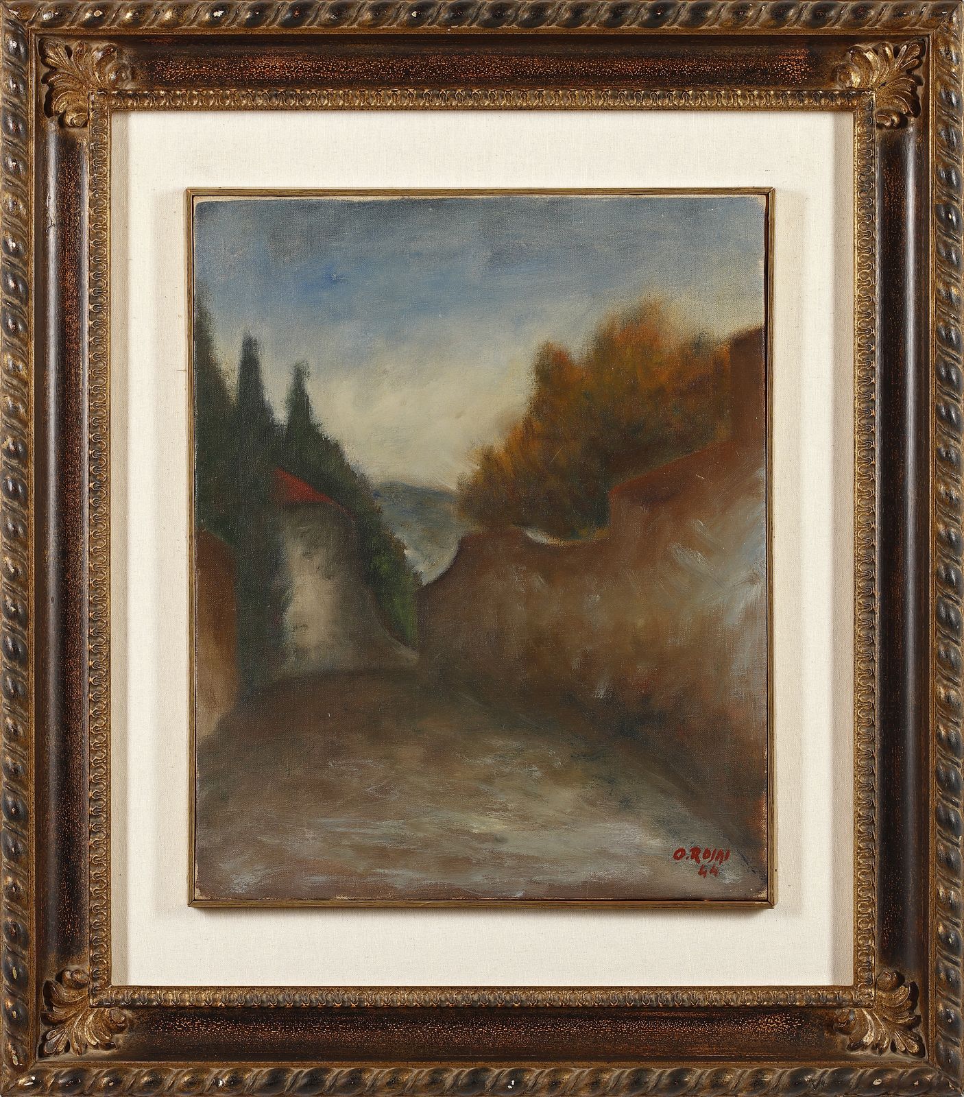 Firma e anno in basso a destra. Al retro cartiglio Galleria Del Cavallino, Venezia. Autentica su fotografia di Luigi Cavallo. Provenienza: Galleria Pananti, Firenze. Collezione privata, Ferrara. Pubblicazioni: Ottone Rosai a cura di Luigi Cavallo, Mazzotta Editore, Milano, 1995, p.218. Esposizioni: Città di Aqui Terme, Amate Sponde, Pitture di Paesaggio in Italia dal 1910 al 1984, Palazzo Liceo Saracco, 21 Luglio -10 Settembre. Galleria del Cavallino, Venezia. Farsetti Arte, Centenario della nascita 1895 -1995, Antologia 200 opere dal 1913 al 1957, Prato, 23 Settembre -22 Ottobre, 1995. Ministero per i Beni Ambientali e culturali, mostra Ottone Rosai, 20 Luglio - 18 settembre, 1983. Ottone Rosai, opere dal 1911 al 1957, Circolo degli Artisti, Torino, aprile - maggio 1983. Farsettiarte, Prato, 23 Settembre -22 Ottobre 1996. Palazzo Reale, Milano, 26 Ottobre 1995 - 6 gennaio 1996.