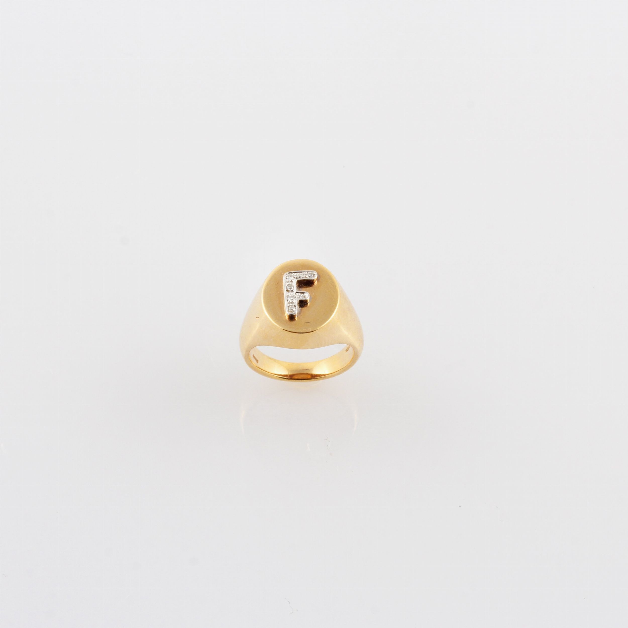 chevalier in oro giallo con lettera F di piccoli brillanti, gr. 7,4.