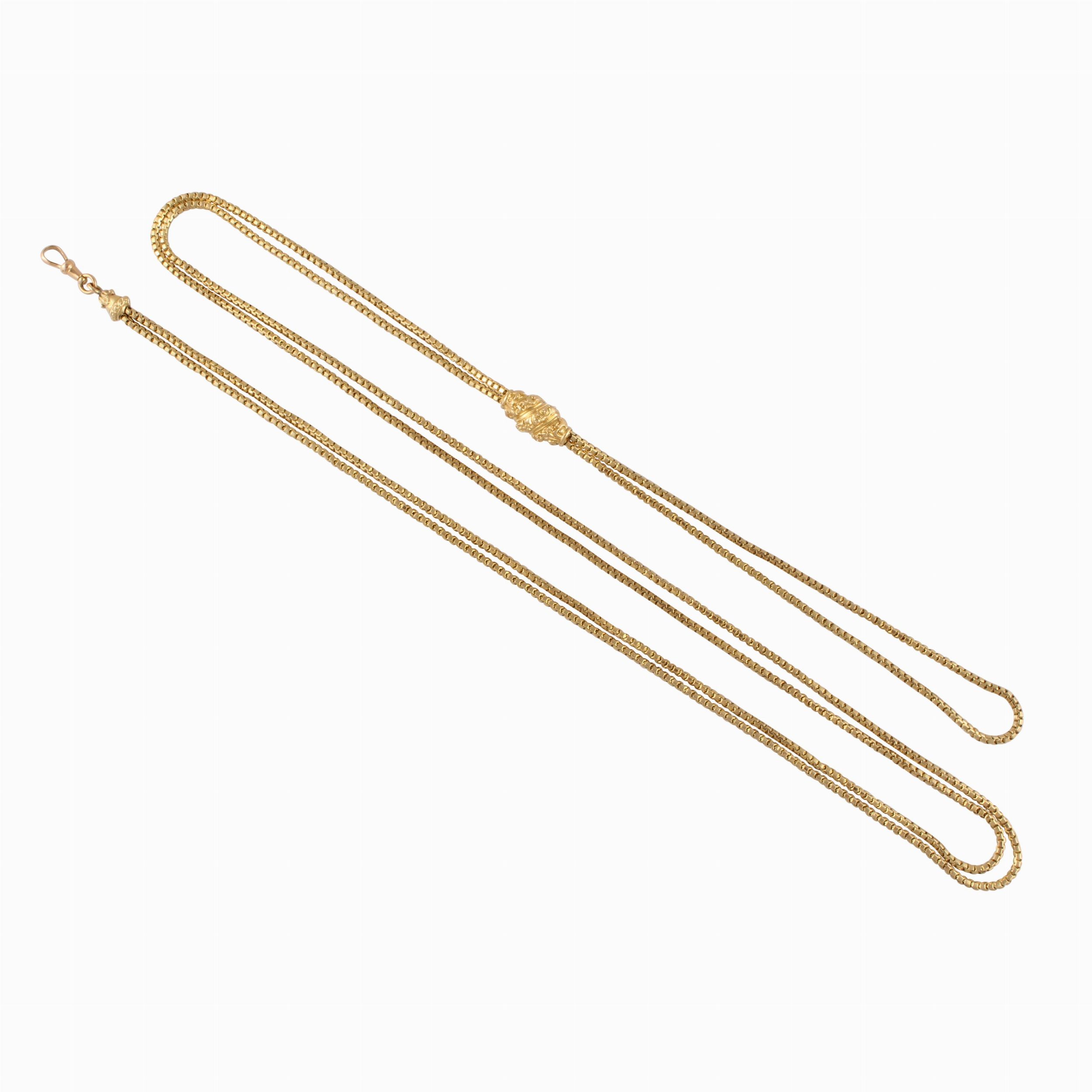 in oro giallo con saliscendi cesellato e moschettone, gr. 31,4