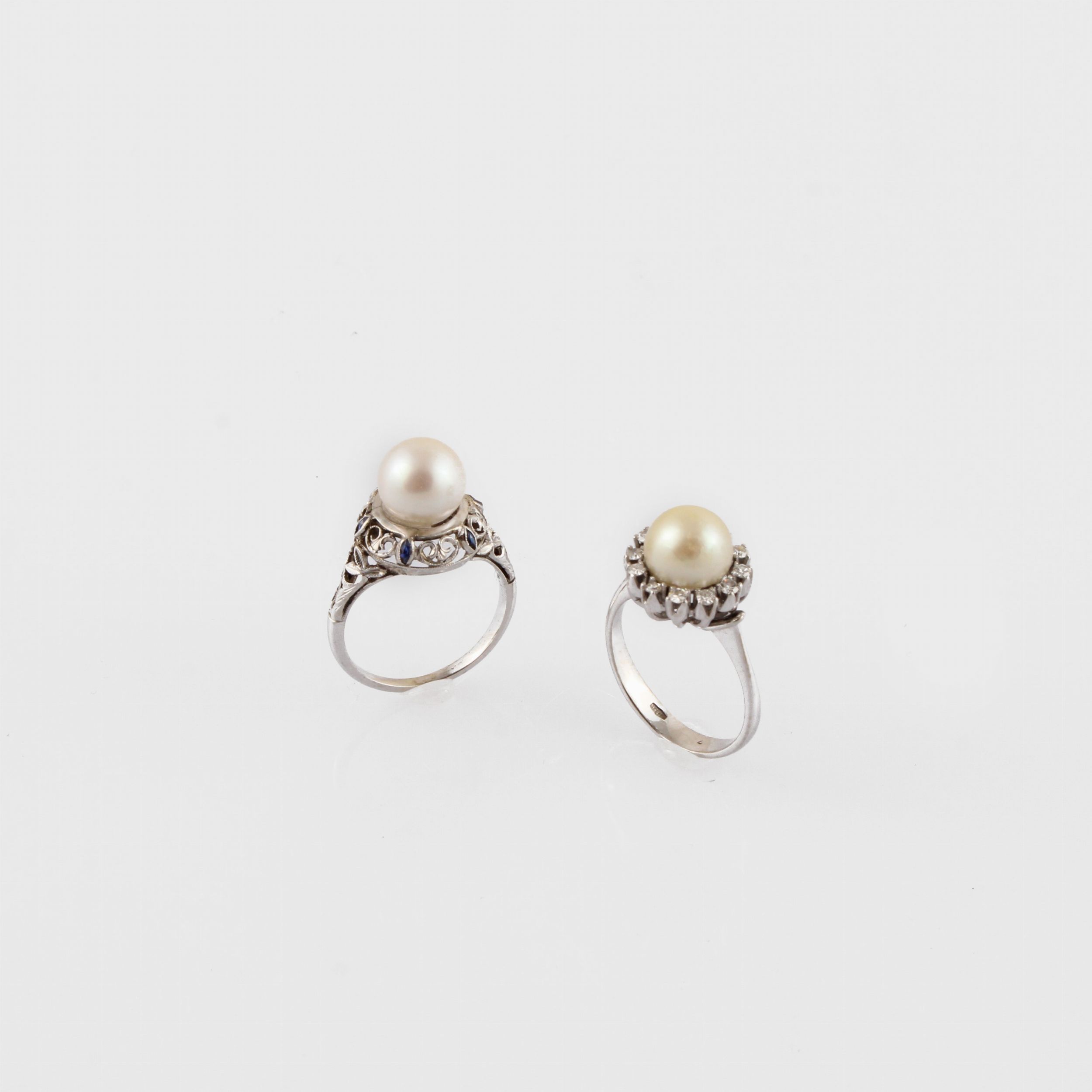 in oro bianco con perle, diamanti e zaffiri nevettes, gr. complessivi 7,1.