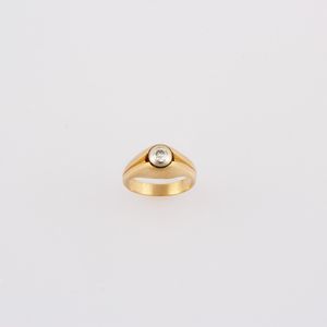 in oro giallo e bianco a cupola con brillante del peso di 0,30 ct ca., gr. 10,7. Misura 19,5