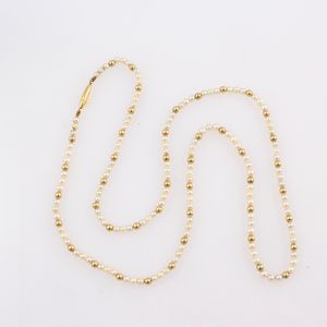 ad un filo di perle 3,5 mm con sferette e chiusura in oro giallo, gr. 16. Lunghezza 63,5 cm