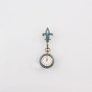 Ref: orologio pendente con spilla in oro e smalti Cassa: in oro giallo e smalti, movimento a vista Quadrante: [..]