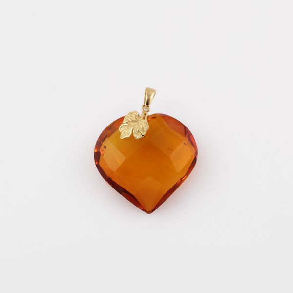 grande cuore sfaccettato in ambra Santo Domingo, montato in oro con foglia di vite applicata, gr. 20,4.