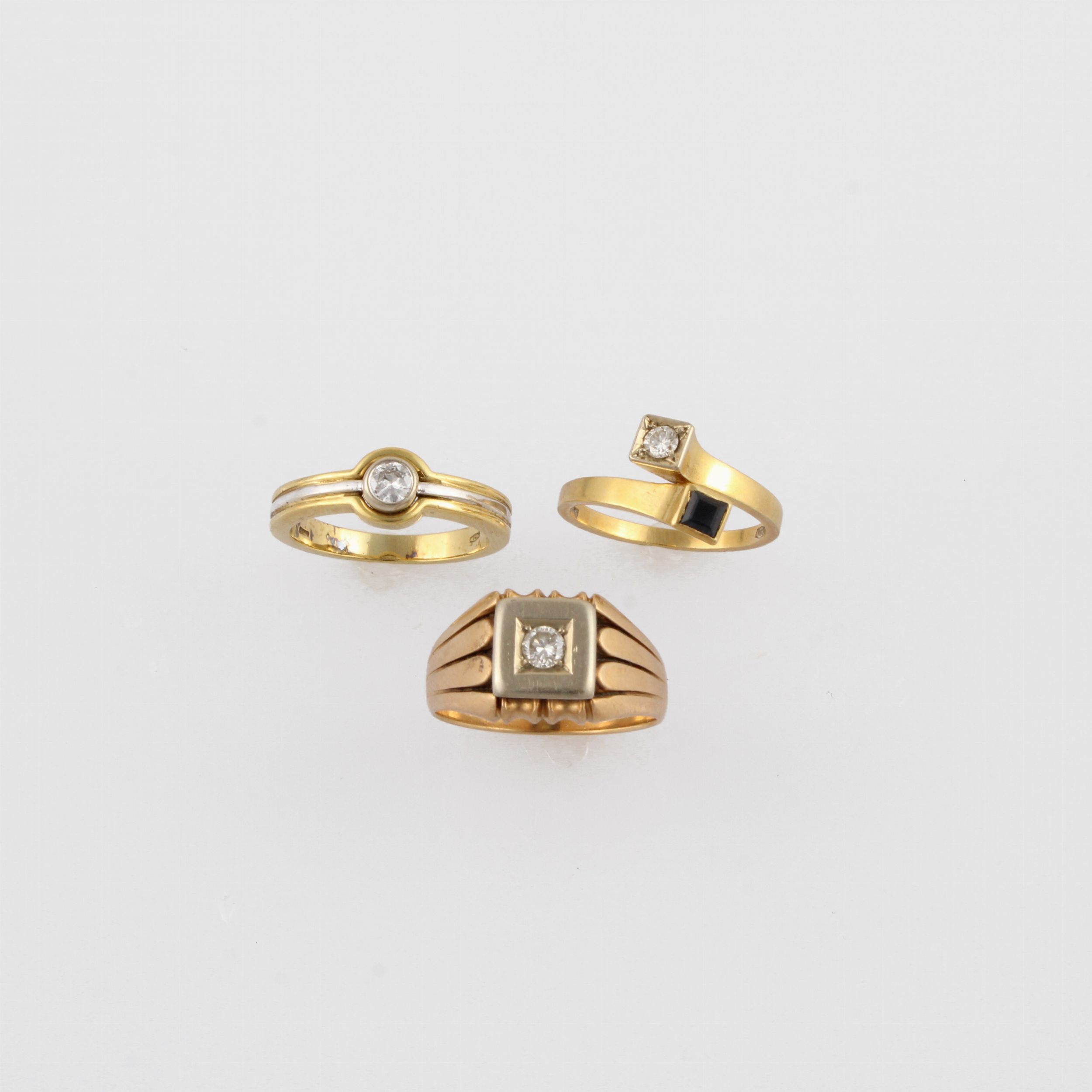 in oro con brillanti e zaffiro carré, gr. complessivi 16,9.