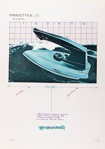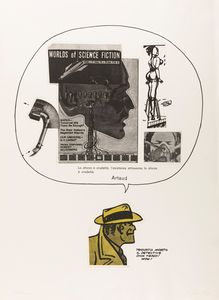 litografia, serigrafia e collage su foglio piegato al centro, es. P/A, cm 33 x 62 ca. (misure del foglio) Firma [..]