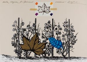 collage su stampa litografica, es. e.a., cm 65 x 90 (misure del foglio) Firma a matita in basso a destra:  [..]