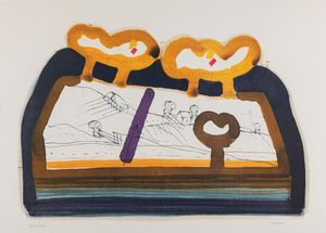 litografia a colori, es. p.a. I/IV, cm 50 x 69,5 (misure del foglio), (sc) 1983 Firma e data a matita in basso [..]