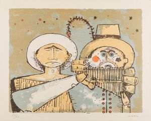 litografia a colori, es. p.a., cm 83,5 x 59,5 (misure del foglio), (sc) 1983 Firma e data in basso a destra [..]