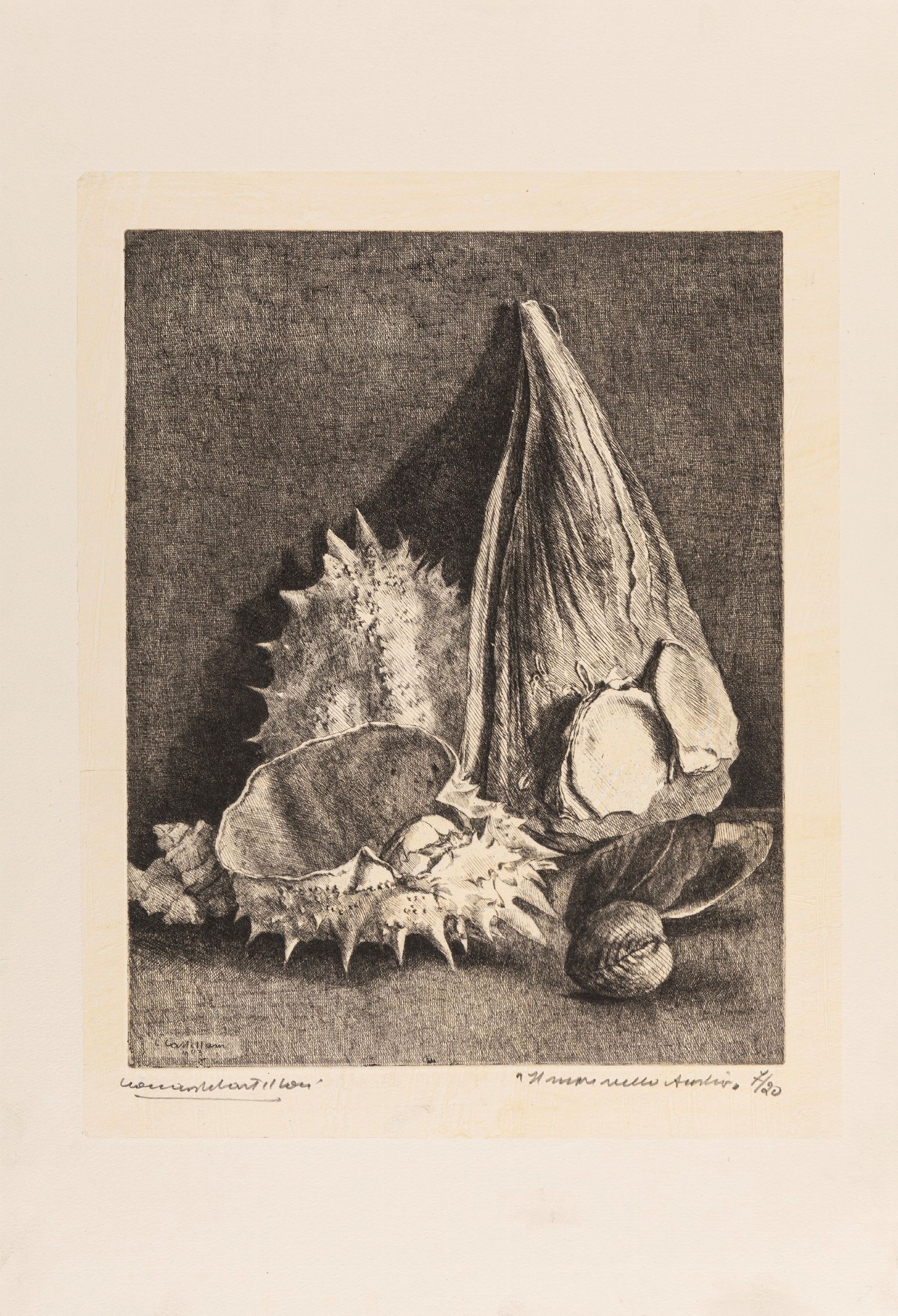 acquaforte su carta velina applicata su carta, es. 7/20, cm 31,2 x 24,5 (misure della lastra) ; cm 36,5 x 28,5 (misure del foglio) cm 50 x 34,5 (misure del supporto) ; cm 68 x 50 (misure della custodia) (sc)