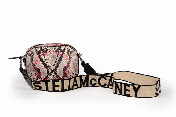 in ecopelle di pitone stampato, con tracolla regolabile e staccabile, cm 18 x 14, con sacchetto