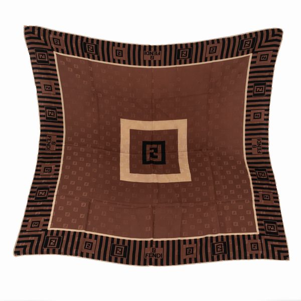 in seta logato color marrone, cm 87 x 93 (lievissimi difetti)
