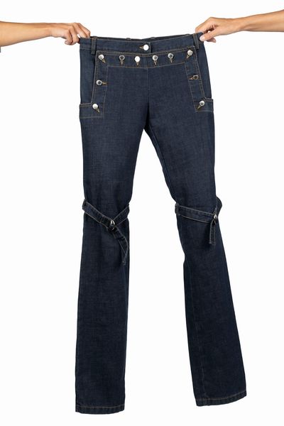 Collezione primavera Runway 2003 color blu scuro, bottini in metallo, tg 42 italiana