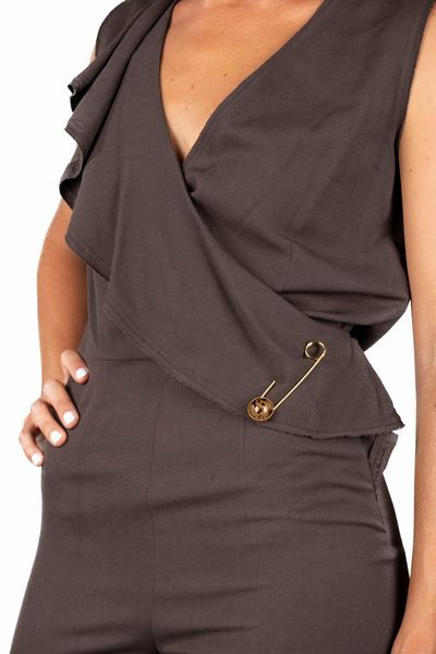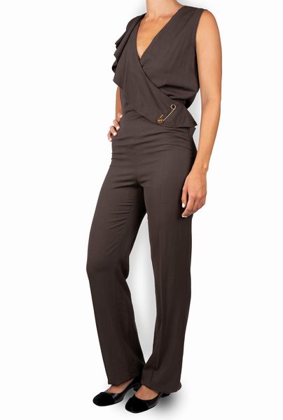 in misto lana color marrone, con spilla in metallo dorato, tg 42 italiana