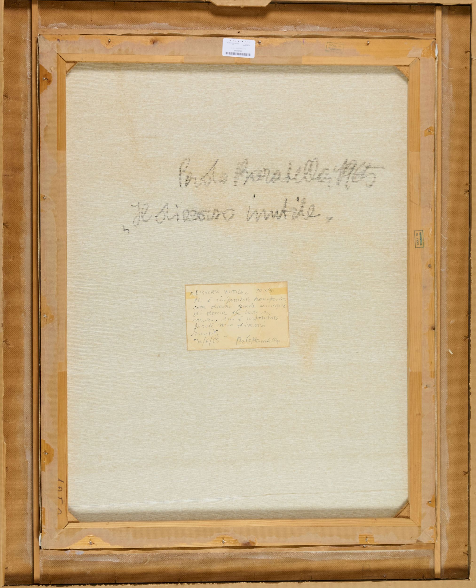 Etichetta con scritto dell'Artista e timbro Collezione Tombari.