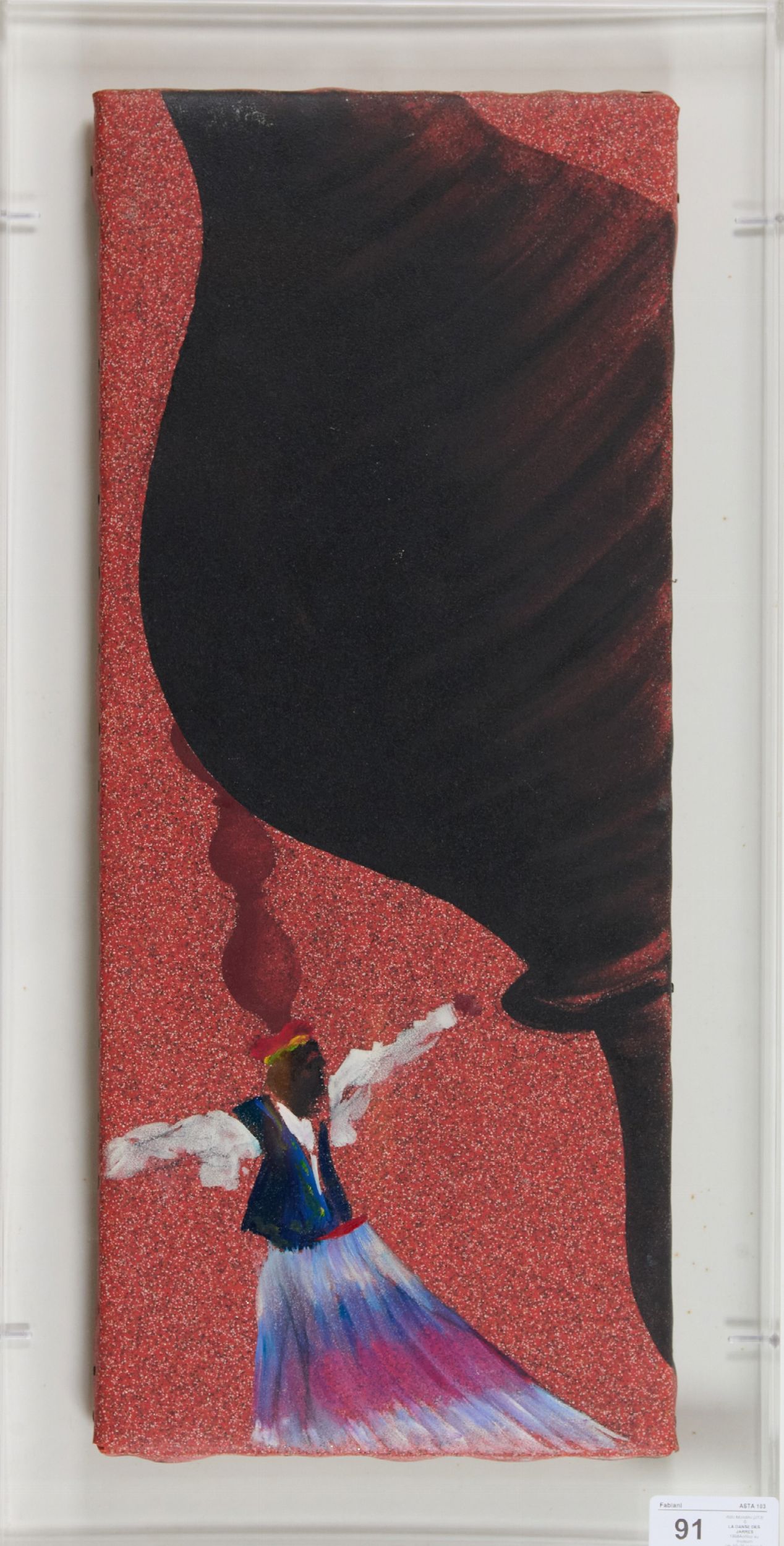 Acrilico su linoleum, cm. 60x25 in teca di plexiglas