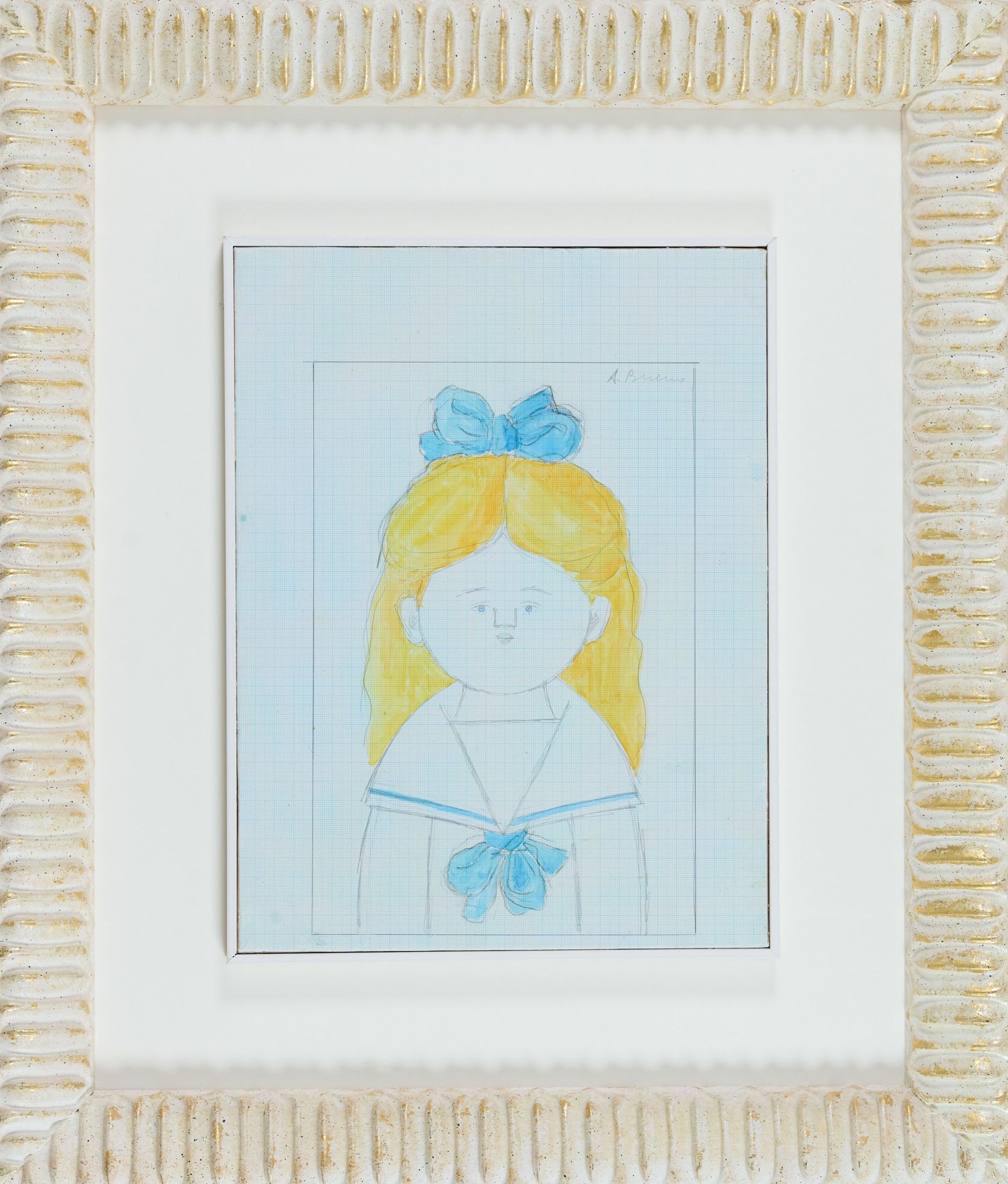 Matita ed acquerello su carta quadrettata applicata su tela, cm. 37x28