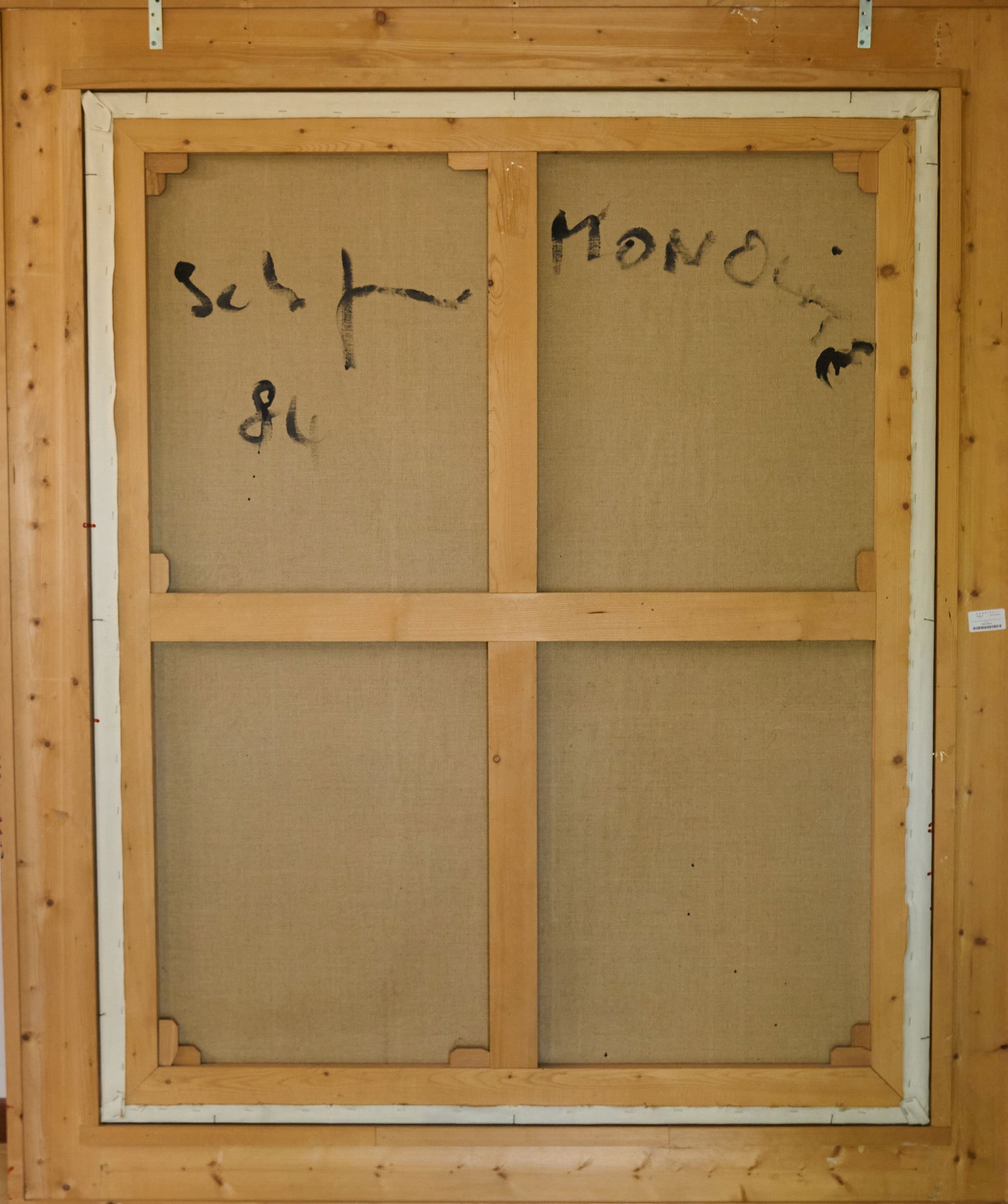 Smalto, acrilico e sabbia su tela e cornice invasa, cm. 190x160